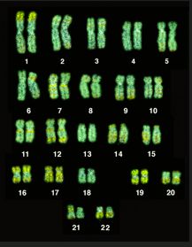 (Image: Chromosome set humans.jpg, no author listed, Wikimedia Commons, CC license).